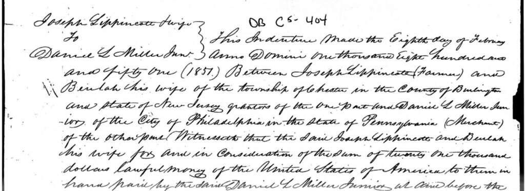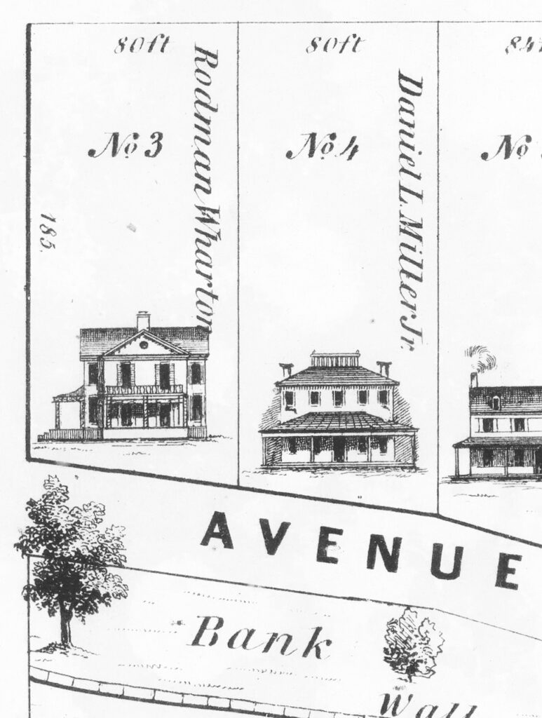 Here’s a view of our whole area in 1849 on the J.W. Otley and R. Whiteford map. The little dots are the only buildings. No Riverton! Palmyra was tiny and there’s nary a Wawa or gas station to be found! All farmland.